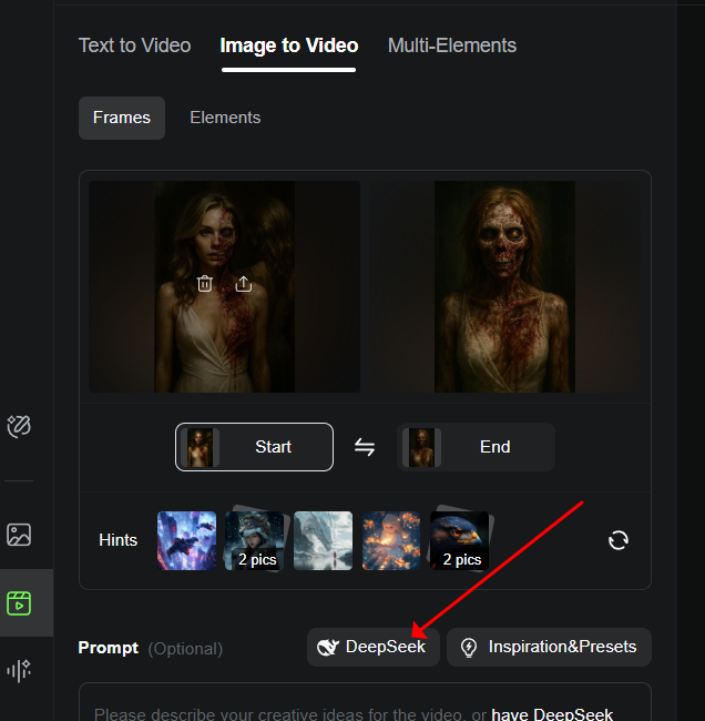 - 프롬포트 입력을 위해 딥시크 버튼을 활용했어요. (자동 프롬포트 생성)