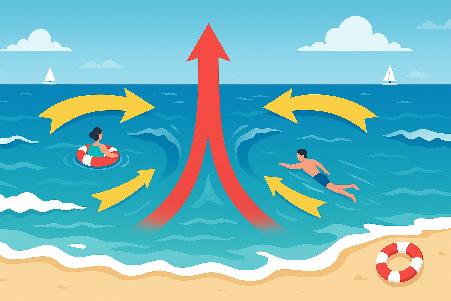해수욕장 중에 이안류 예보 해주는 곳도 있어요. (이안류는 물이 갑자기 바다로 빨려 들어가는 강한 물살이에요.)
